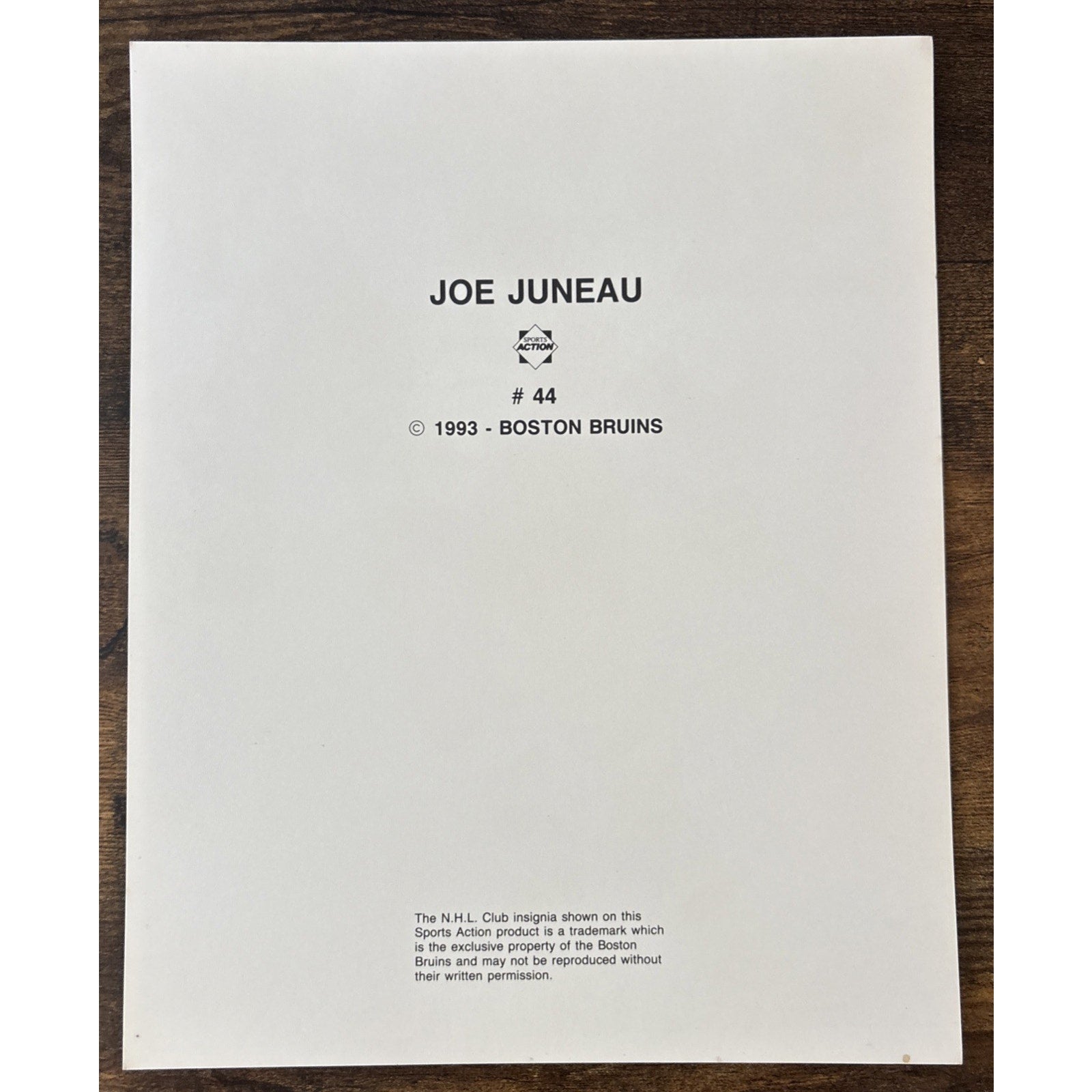 NHL Boston Bruins JOE JUNEAU #44 Game Sports Action Color 8 x 10 Photo Picture